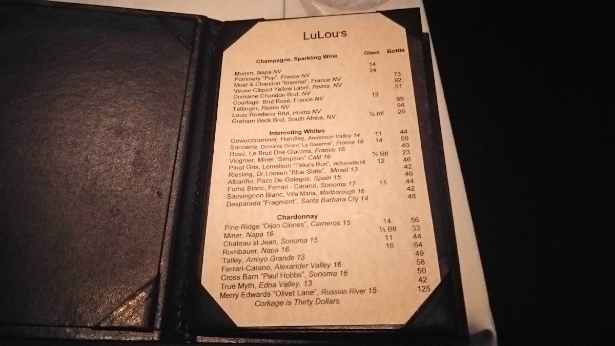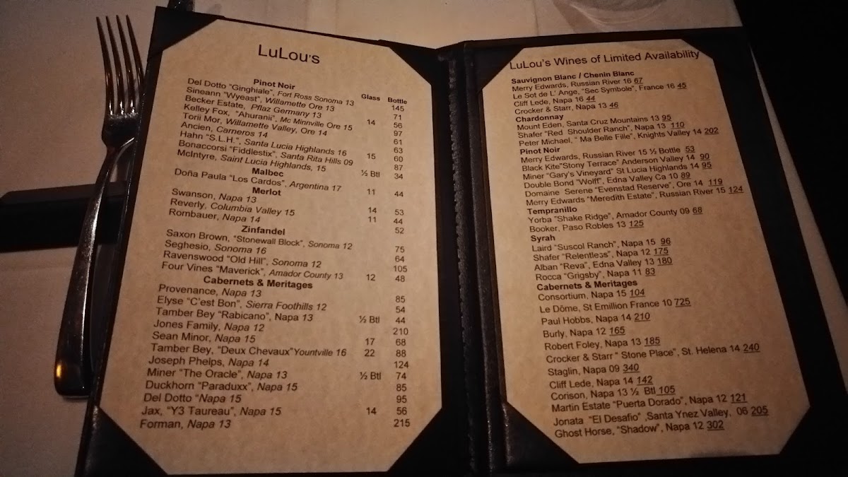 To complement your dining experience, Lulou's boasts an impressive selection of wines. Whether you prefer an Interesting White like the crisp Gewurztraminer or a bold Pinot Noir, there’s a bottle to suit every palate and enhance your meal.